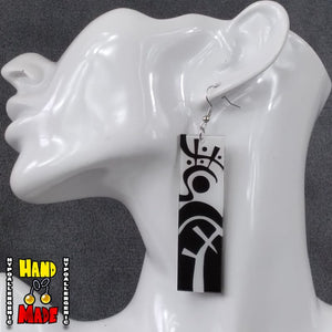 - Handmade Anime Earrings with a bold black crest-style acrylic design